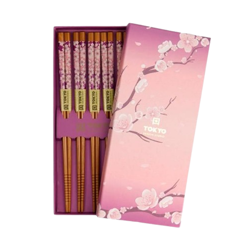 Palillo Set 5 pares caja sakura rosa